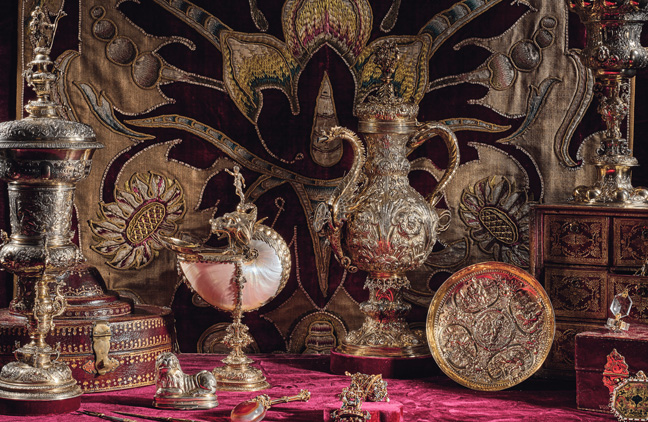 • Symbolic imagery such as British lions, unicorns, and heraldic emblems.